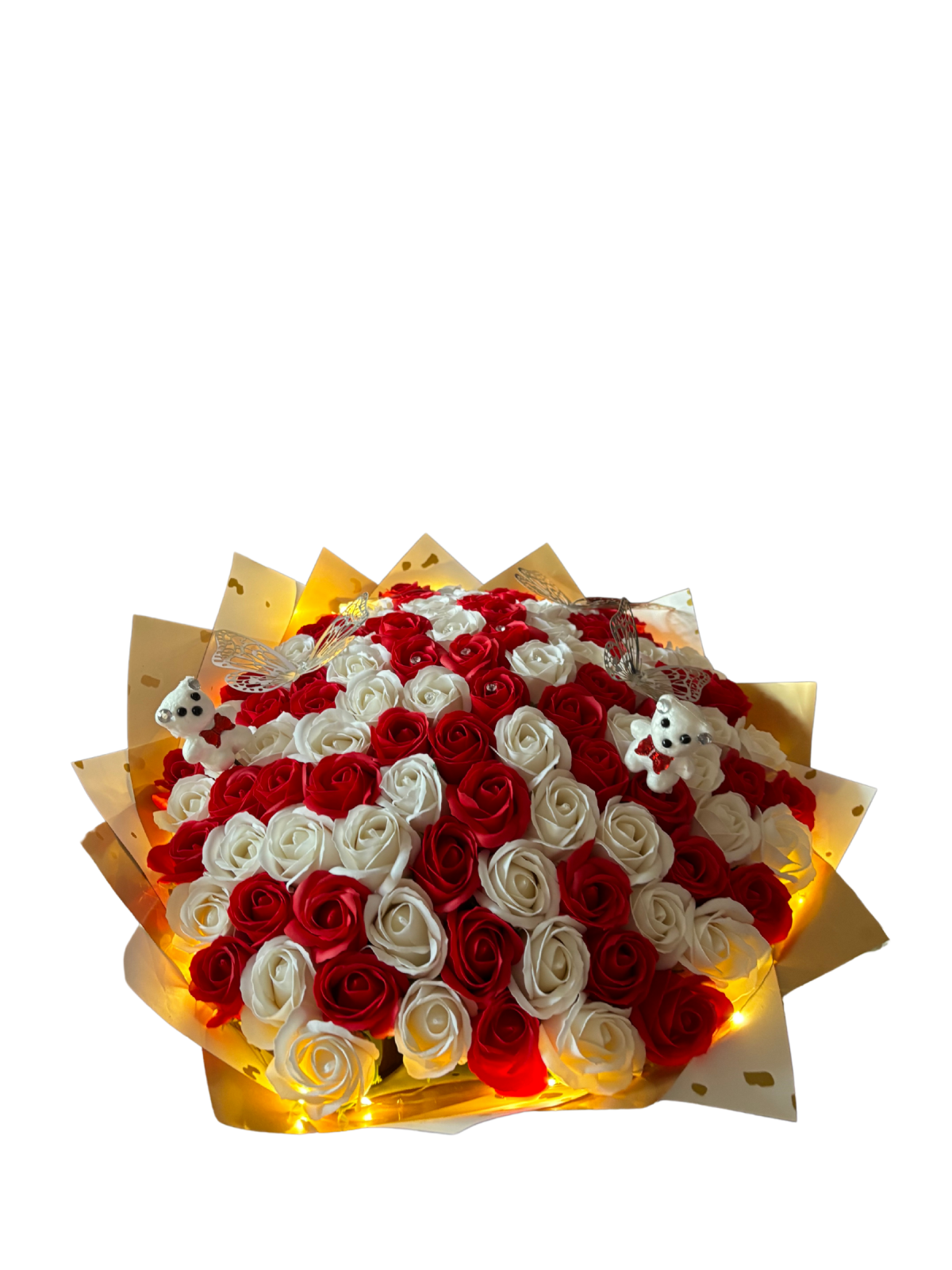 Buchetul contine fluturi,ursuleti si lumini LED.
